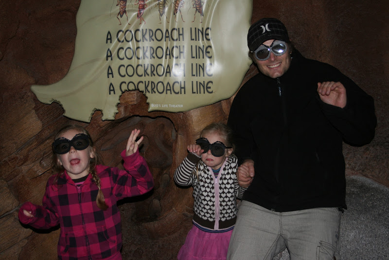 After, both girls were a little scared by the ride so before going back to the hotel, we decided to take them to the Bug's Life area again, so we would leave on a happy note. Well, while we were there, riding the bumper cars, it started pouring rain. Luckily this ride was under a canopy. So we went on the ride like 10 times in a row, waiting for the rain to stop. It eventually turned into a sprinkle and we strolled back to the hotel.